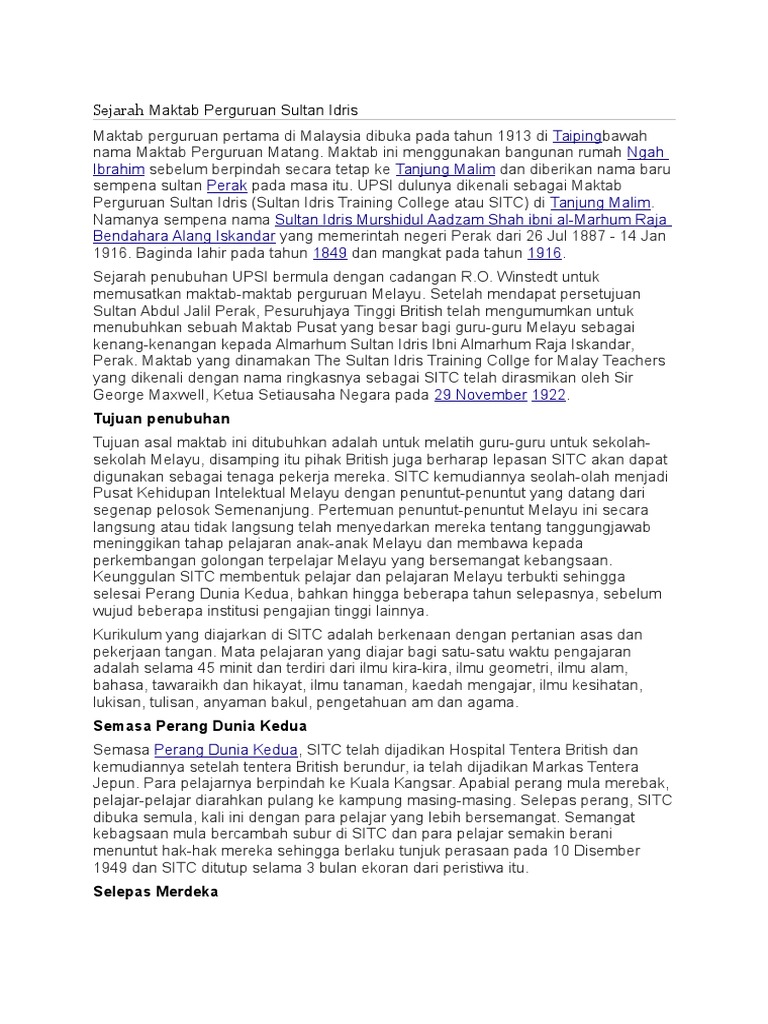 George maxwell(ketua setiausaha kerajaan negeri melayu bersekutu). Mpsi is defined as maktab perguruan sultan idris somewhat frequently. 35900, tanjong malim, perak darul ridzuan. Universiti pendidikan sultan idris, upsi Pembukaan maktab perguruan sultan idris pekhabar.