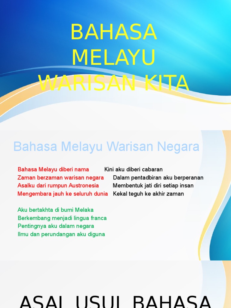 Pelajar dapat menyatakan dua warisan negara yang diketahui. .bahasa melayu warisan kita tema : Soalan memilih ayat yang sama maksud akan mentaksir kemahiran membaca dan memahami ayat bahasa melayu para pelajar. Layanan gratis google secara instan menerjemahkan kata, frasa, dan halaman web antara bahasa inggris dan lebih dari 100 bahasa lainnya. Asas penting yang menjamin kesinambungan permainan tradisional pada masa lalu ialah keseragaman cara hidup nenek moyang kita.