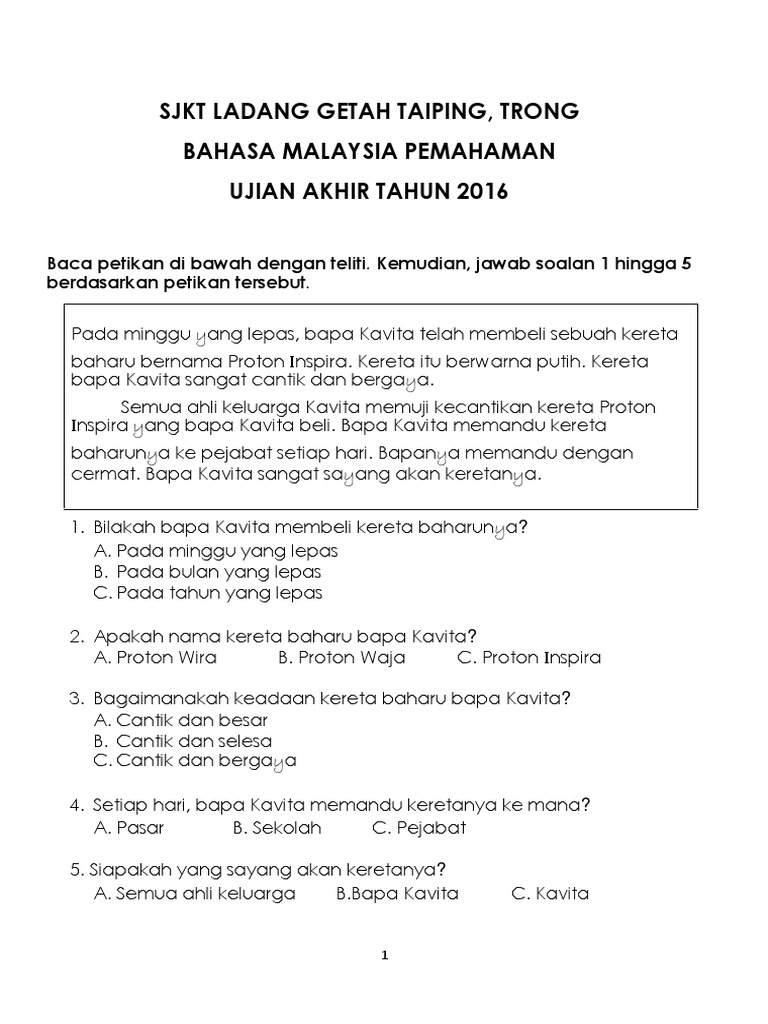 Soalan bahasa melayu pemahaman tahun 5 kssr terengganu t. Menggunakan perkataan bergaris tanda baca dan pemahaman ujian bulanan tahun 2 latihan pemahaman tahap 2 pemahaman tahun 3 latihan. Qaseh malaika binti farhat june 15, 2020 at 12:39 pm. Para pelajar perlu diuji melalui pelbagai kaedah penilaian bagi mengetahui sejauh mana pemahaman mereka dengan. See more ideas about bahasa melayu, tatabahasa, prasekolah.