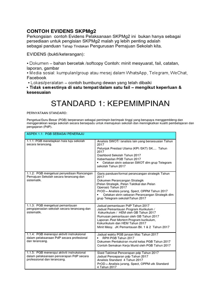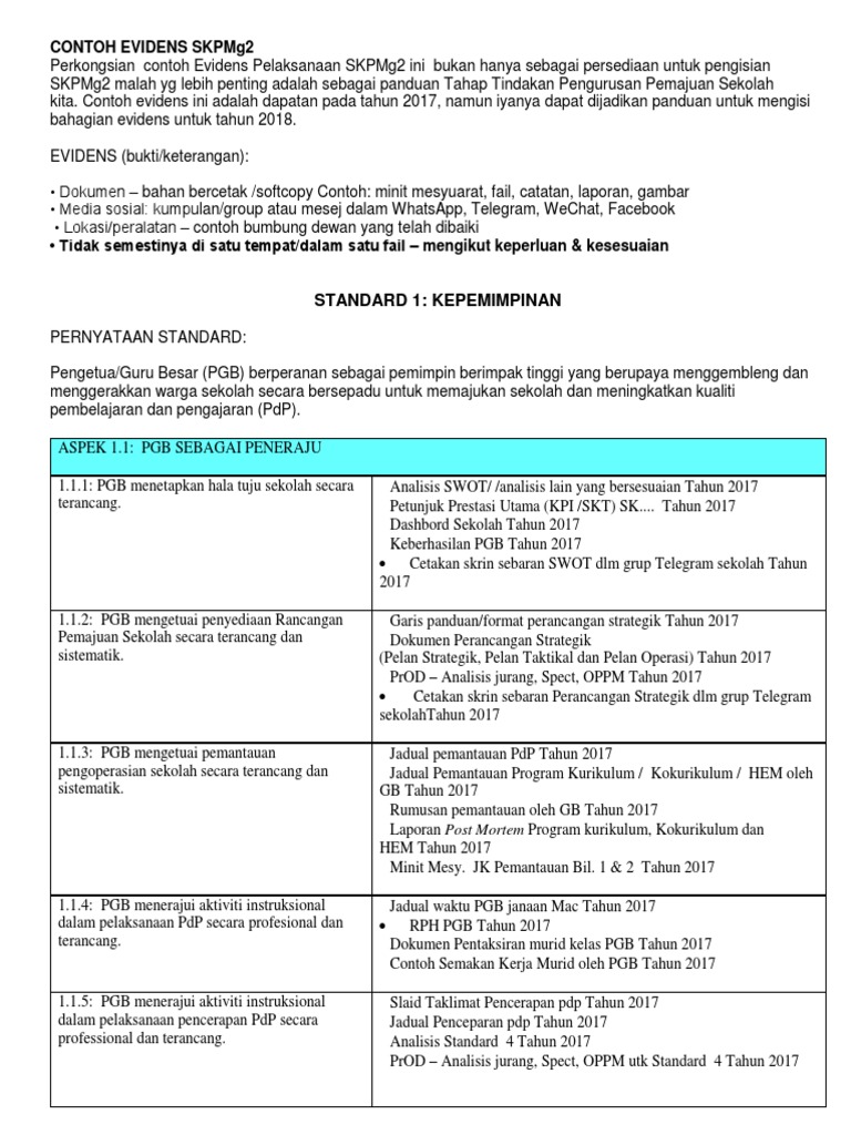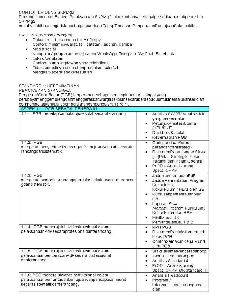 Strategi bimbingan untuk standard 1. Cadangan evidens skpmg2 untuk semua standard 1 hingga 4 21:52:00 eviden skpmg2 eviden skpmg2 hem eviden skpmg2 koku eviden skpmg2 pengurusan kurikulum eviden standard 4 perkongsian contoh evidens pelaksanaan skpmg2 ini bukan hanya sebagai persediaan untuk. Standard 1 kepimpinan (standard kualiti pendidikan malaysia gelombang 2) (skpmg2) 1. Skpmg2 ialah singkatan bagi standard kualiti pendidikan malaysia gelombang 2. Bagi standard 3.1 pengurusan kurikulum, terdapat beberapa aspek dalam standard ini yang perlu dihadirkan oleh pihak sekolah bagi mendapat markah yang baik.