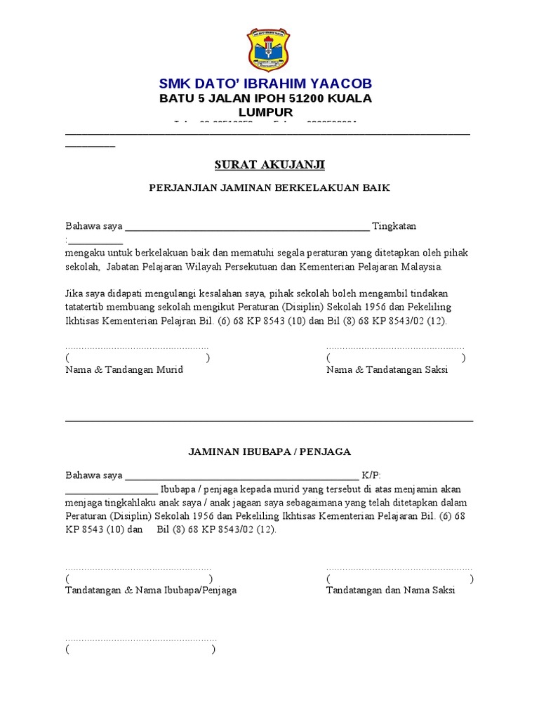 Surat Akujanji Dan Tanggung Rugi Tenaga Nasional Berhad from www.yumpu.com Savesave surat akujanji.pdf for later. ** jika anak berumur 18 tahun ke atas hendaklah menandatangani surat aku janji. 2020 09 08 usage frequency: Grace, i know i promised you i was comin'home. This letter is to inform you that i wish to accept the position of head landscaper that was offered to me on the day of december 24th, 2009. Contextual translation of surat akujanji into english. Surat aku janji other contents: Institut kemahiran belia negara / institut kemahiran tinggi belia negara buku pendaftaran lekatkan gambar buku.